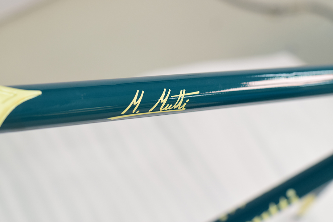 Nuova colorazione ottanio per questo telaio da corsa degli anni 70 convertito a contropedale, giunzioni e logo color crema spiccano partilcolarmente dal resto della bicicletta. MIGLIORE VENETO NORD ITALIA QUALITA PERSONALIZZAZIONE