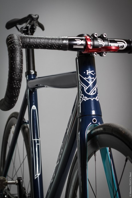 Serie di bici scatto fisso realizzate per la squadra ciclistica cykeln. Il telaio deda in tita blu notte con grafiche bianche e interno forcella e carro in azzurro MADE IN ITALY VERNICIATURA VENETO ITALIA ALTA QUALITA DESIGN BIKE VENEZIA